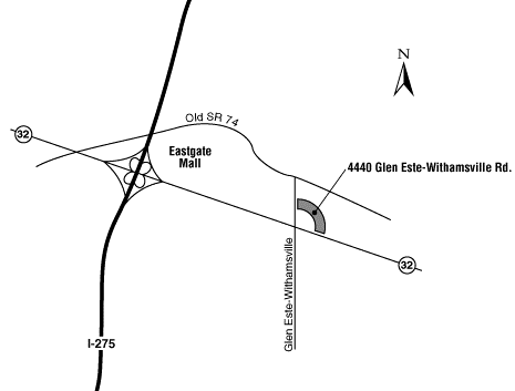 From I-275: Take Hwy. 32 East. Turn left on Glen Este-Withamsville Road. Office located in Eastgate Commerce Center.